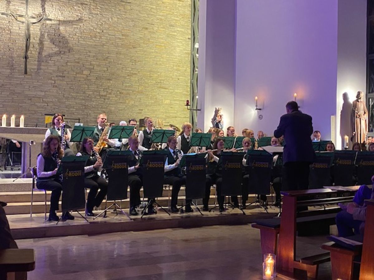 Die Bläserinnen und Bläser zeigten im Zusammenspiel mit den Schlaginstrumenten auf ganzer Linie ihr Können und die begeisterten Besucherinnen und Besucher dankten es mit Standing Ovations. Dieses Format der musikalischen Andacht sollte auf jeden Fall wieder in St. Josef in Rodde stattfinden. Natürlich darf hier auch schon auf das nächste Konzert für alle Fans des Blas-Orchesters Rodde hingewiesen werden, nämlich in der Stadthalle in Rheine am 21. März 2026.
